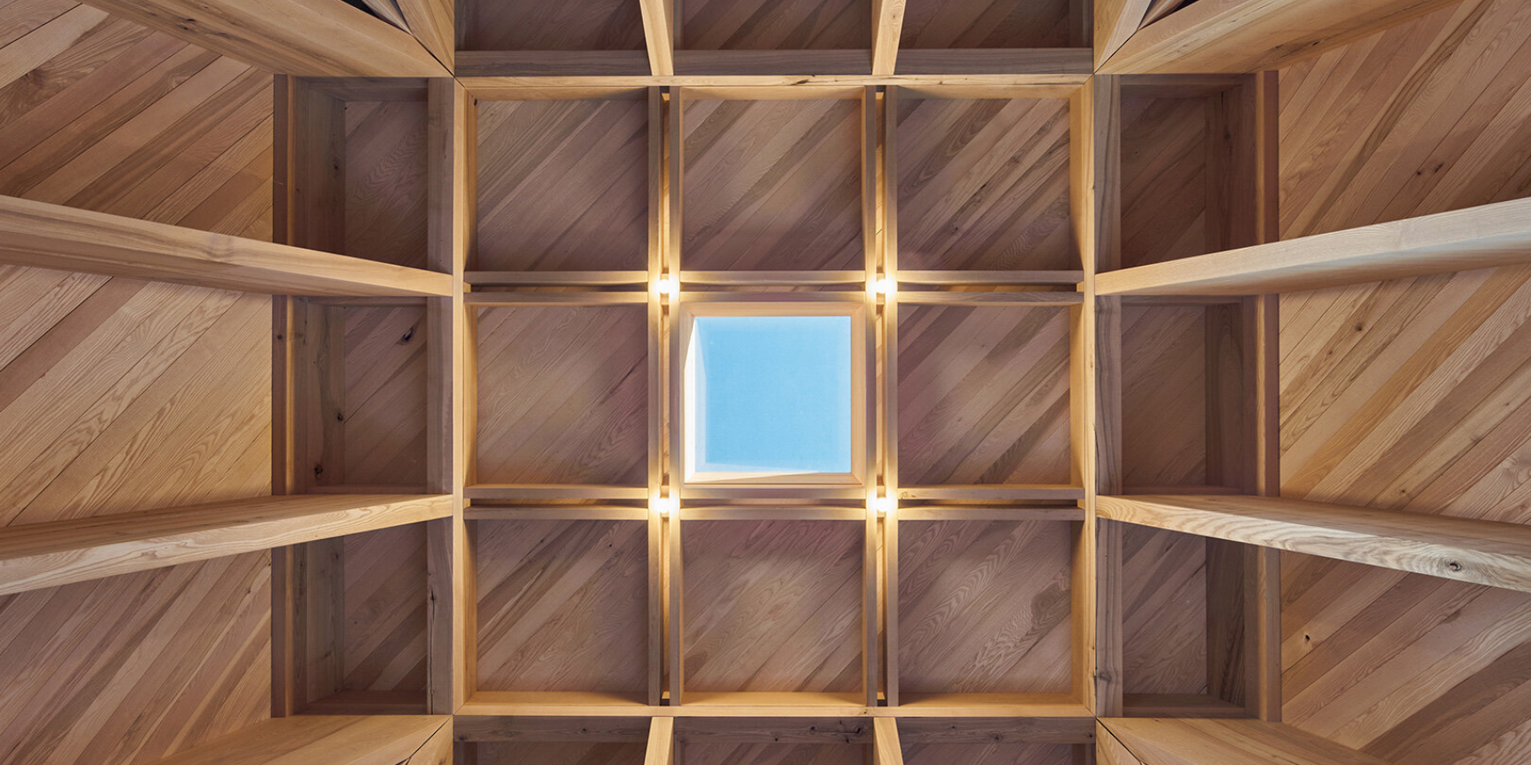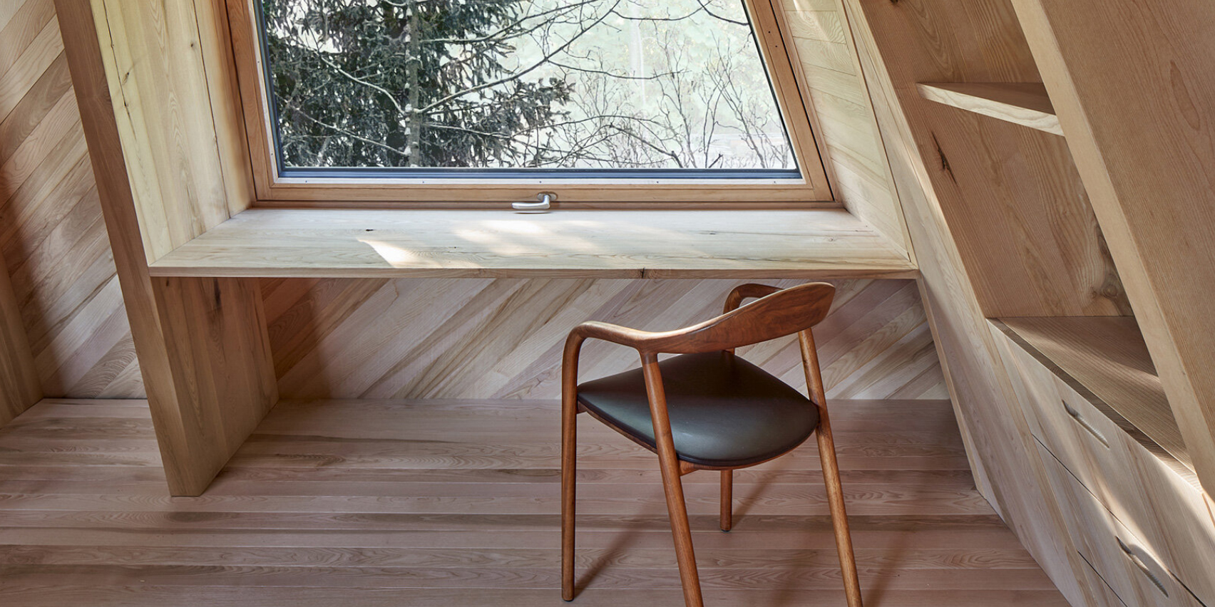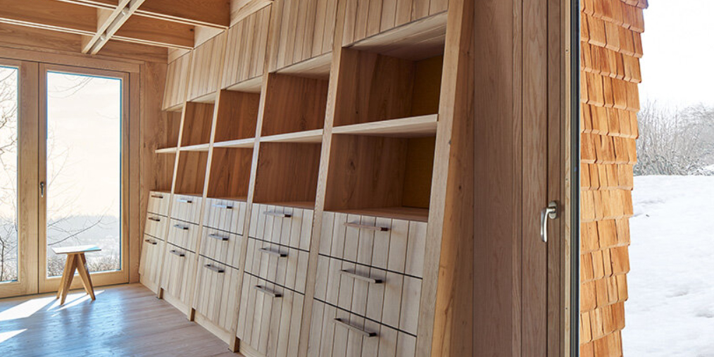 Структурная сетка с ячейками по 80 см даёт возможность менять размер дома — он может быть одноэтажным или трёхэтажным. Особенность проекта — крутая крыша, улучшающая климатические условия внутри. Дом построен из необработанного ясеня, заготовленного в лесу Зибентиш рядом с Аугсбургом.