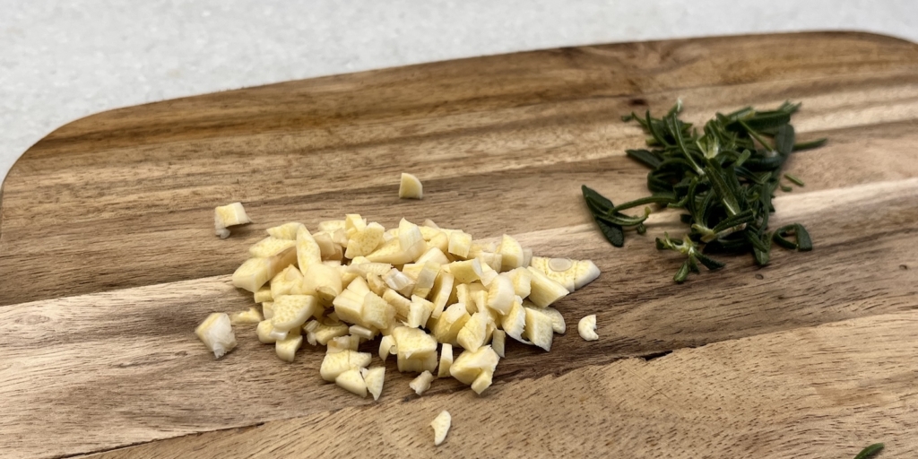 Мелко порубите чеснок и розмарин.