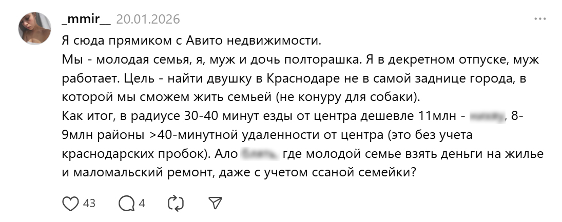 Кто-то высказывается и о жилье, которое не становится доступным даже с учётом семейной ипотеки.