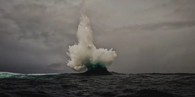 Австралийские бодибордисты во время съёмок любительского фильма редкое природное явление — место, где сразу четыре волны сходятся в одной точке в океане, а затем вместе выстреливают как пушка. Выглядит это так, словно взорвалась глубоководная бомба.