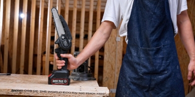 Бесщёточный мотор разгоняется до 4500 об/мин: цепь движется быстро, поэтому инструмент не застревает в древесине и режет ровно без сильного давления. За счёт компактных размеров и небольшого веса пилу удобно держать одной рукой. По отзывам, она уверенно справляется с древесиной диаметром до 10–15 см, а при особой аккуратности и острой цепи — с более крупными заготовками. Производитель заявляет, что распилить бревно толщиной 15 см можно примерно за 10 секунд.