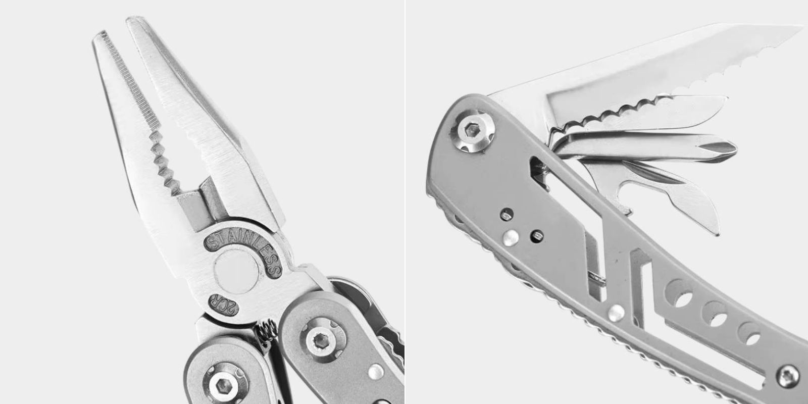 В повседневной жизни мультитул порой оказывается полезнее полноценного ящика с инструментами. Особенно, когда нужно быстро подтянуть винт, разрезать скотч на посылке или открыть банку в походе. Со всеми перечисленными и другими функциями прекрасно справляется модель из нержавеющей стали — материала, который не боится контакта с водой, легко очищается, не впитывают запахи и служит десятилетиями.