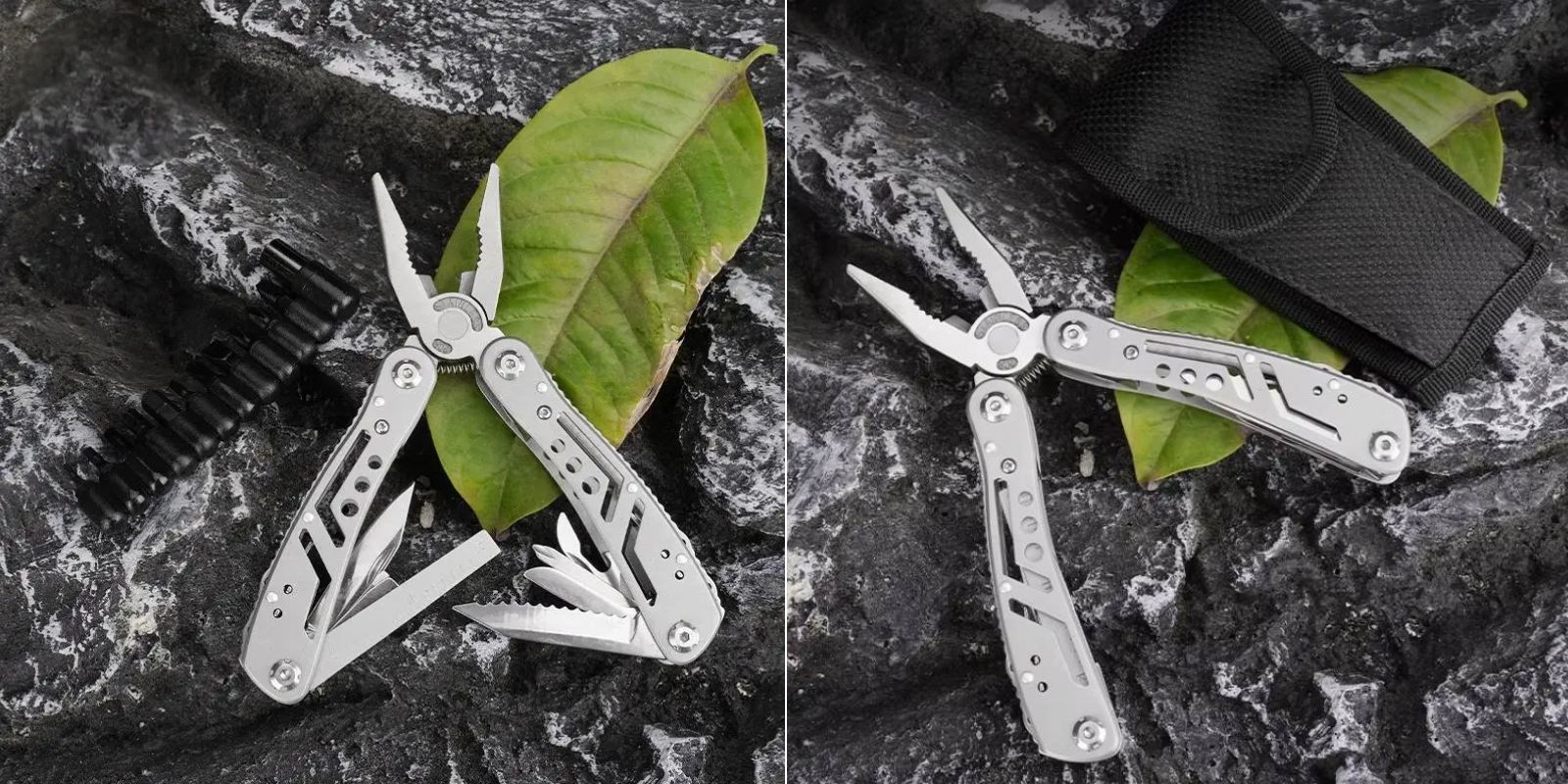 В этом варианте сочетаются игольные и стандартные плоскогубцы, резак для проволоки, два ножа — с длинным и коротким лезвием, а также маленькая и средняя отвёртки с прямым и крестовым шлицами. Дополняет комплект металлическая пилочка для ногтей, линейка и пила, которую также можно использовать для снятия рыболовных крючков. Помимо этого, предусмотрена открывалка для банок и бутылок.