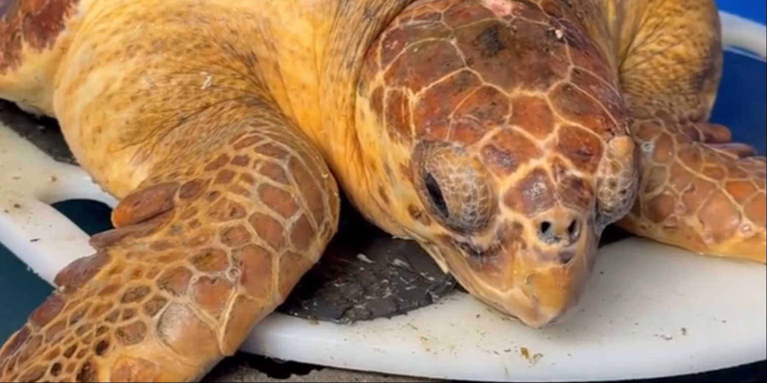 Это оказалась самка логгерхеда, вида, который находится под угрозой исчезновения. Эти черепахи достигают 70–95 сантиметров в длину и весят от 80 до 200 килограммов. Табита сразу распознала у неё «синдром ослабленной черепахи», когда животное становится вялым, отказывается от еды и даже не хочет открывать глаза. Это крайне тяжёлое состояние, причины которого до конца не изучены. Даже в реабилитационных центрах выживает менее четверти таких пациентов.
