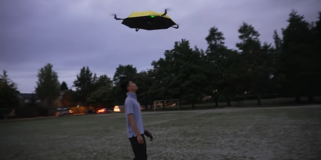 Инженер и автор YouTube-канала I Build Stuff Джон Цзе автономный летающий зонт. В отличие от привычных моделей, которые нужно держать в руках, его устройство использует дрон-технологии и способно парить над человеком, защищая от дождя.
