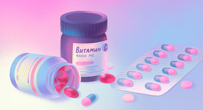 В осенне-зимний период особенно важно принимать добавки, так как солнечного света, стимулирующего выработку витамина D, недостаточно. Суточная доза — 1 000 МЕ.