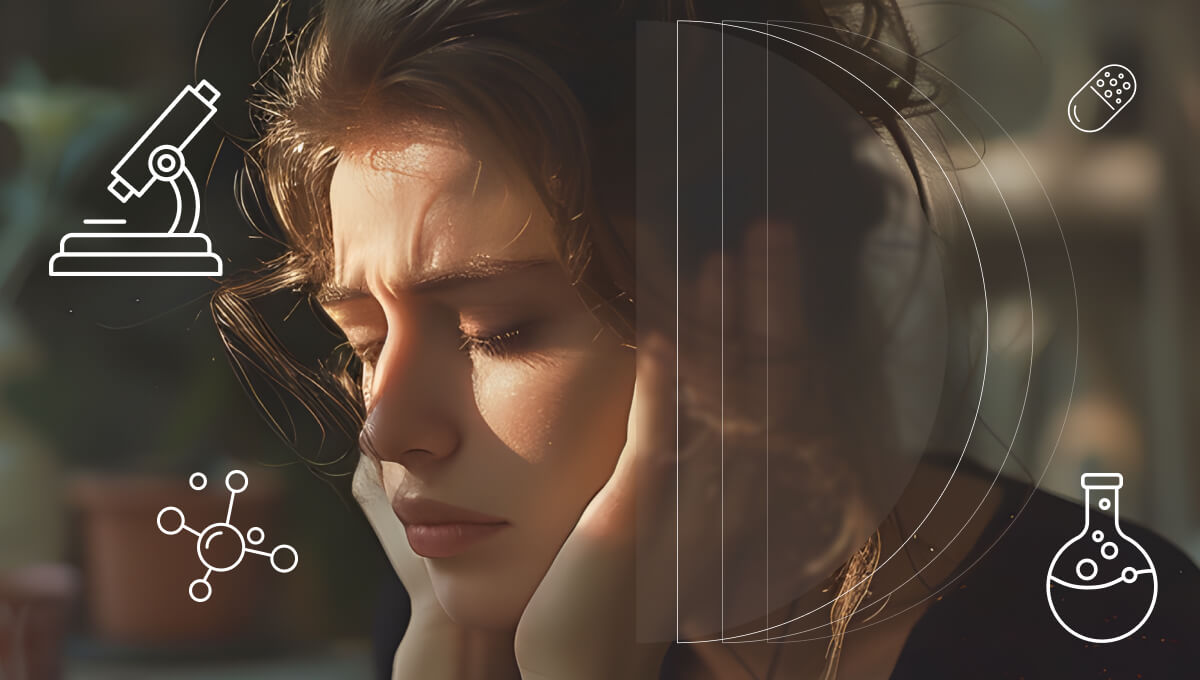 Пока болезнь недостаточно изучена, но информация, что может происходить в нервной системе человека, испытывающего мигрень, уже есть. Например, в исследованиях отмечается7, что у таких людей может быть повышена возбудимость нейронов коры головного мозга и тригемино-васкулярной системы. Алкоголь, дефицит сна, стресс, менструация и другие триггеры могут негативно влиять на эти структуры. В ответ на них в зонах головного мозга выделяется особый белок — кальцитонин-ген родственный пептид (CGRP). Это один из передатчиков боли, который отвечает за развитие головной боли при приступе мигрени.