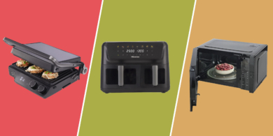 Готовить быстро и с минимумом масла помогает аэрогриль. Прибор работает за счёт циркуляции горячего воздуха, поэтому блюда получаются с хрустящей корочкой, но сочные внутри. Так, вместительный аэрогриль от Hisense HAF2700DCD (11 литров) с двумя корзинами может готовить сразу два разных блюда, не смешивая запахи. У каждой корзины свой нагрев и вентилятор, а функция синхронизации подстраивает время так, чтобы всё было готово одновременно. Управлять аэрогрилем можно с помощью цветного сенсорного дисплея: достаточно выбрать одну из восьми автоматических программ или вручную задать температуру в диапазоне 80–200 °C. Встроенная подсветка и окошки помогают контролировать процесс. Антипригарное покрытие и съёмные решётки упрощают мытьё аэрогриля после использования.