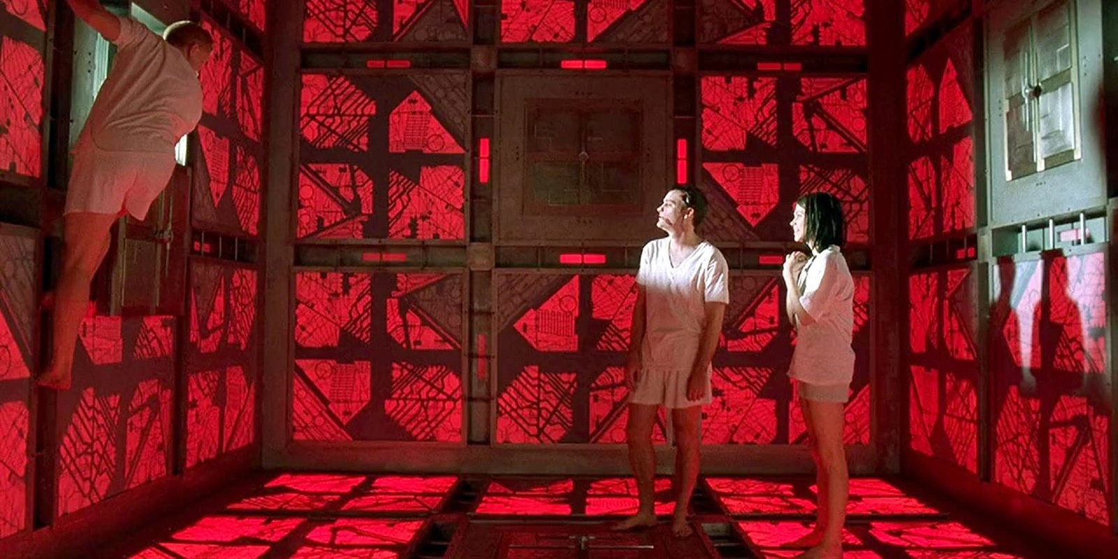 В топе и «Куб» о группе людей, которые оказываются внутри таинственного замкнутого сооружения с комнатами. В каждой есть входы и выходы, а также смертельные ловушки.
