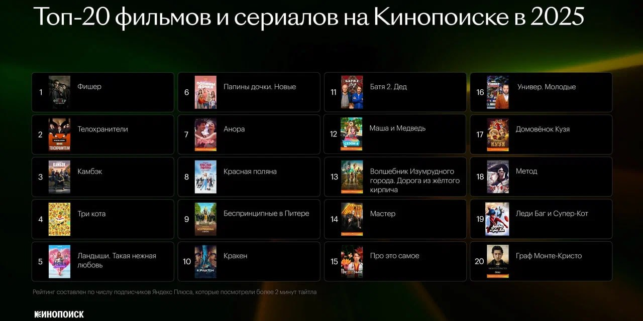 20 самых популярных сериалов и фильмов на «Кинопоиске» в 2025 году