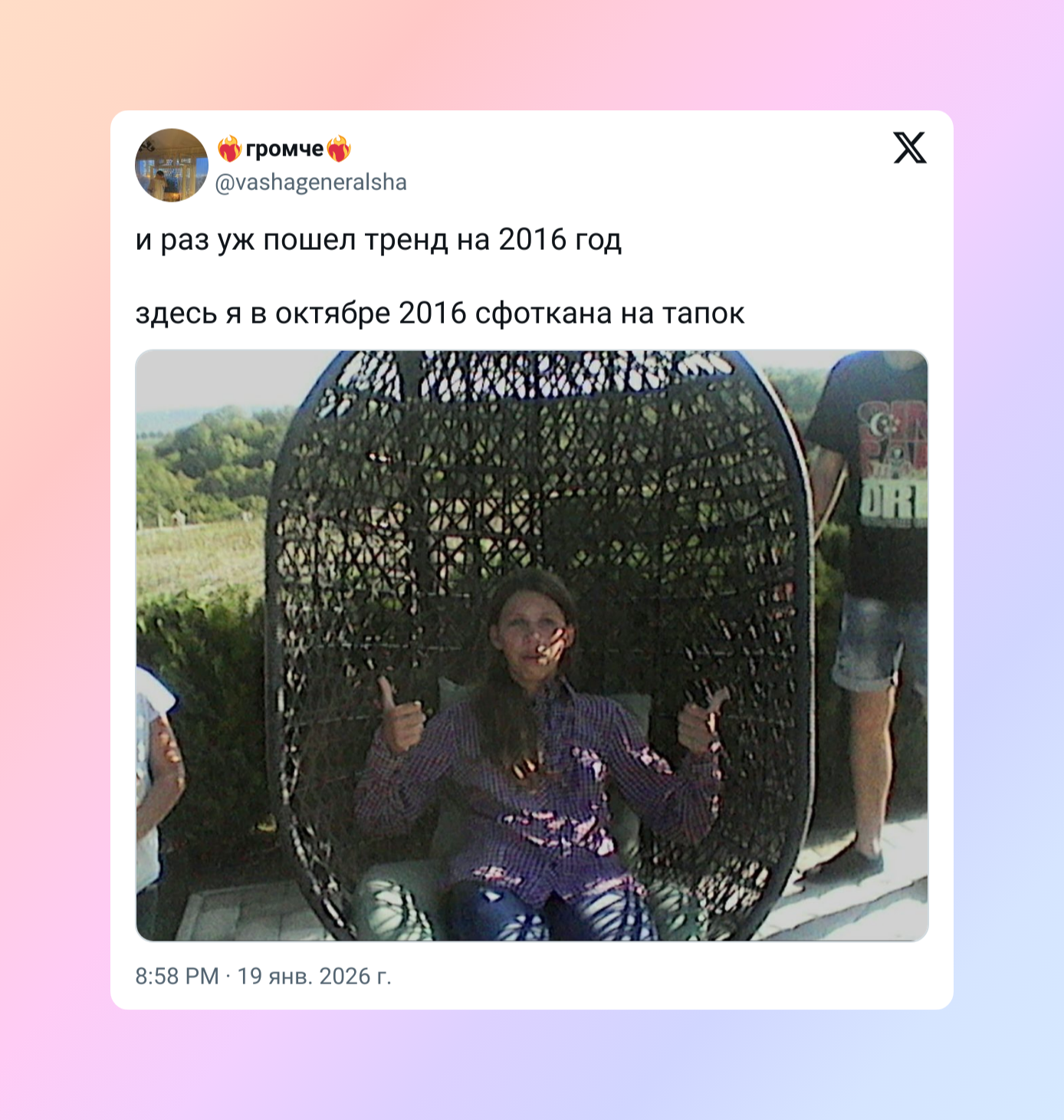 «Сфоткана на тапок»: соцсети заполнили кадры из 2016-го — с узкими джинсами и нелепыми фильтрами