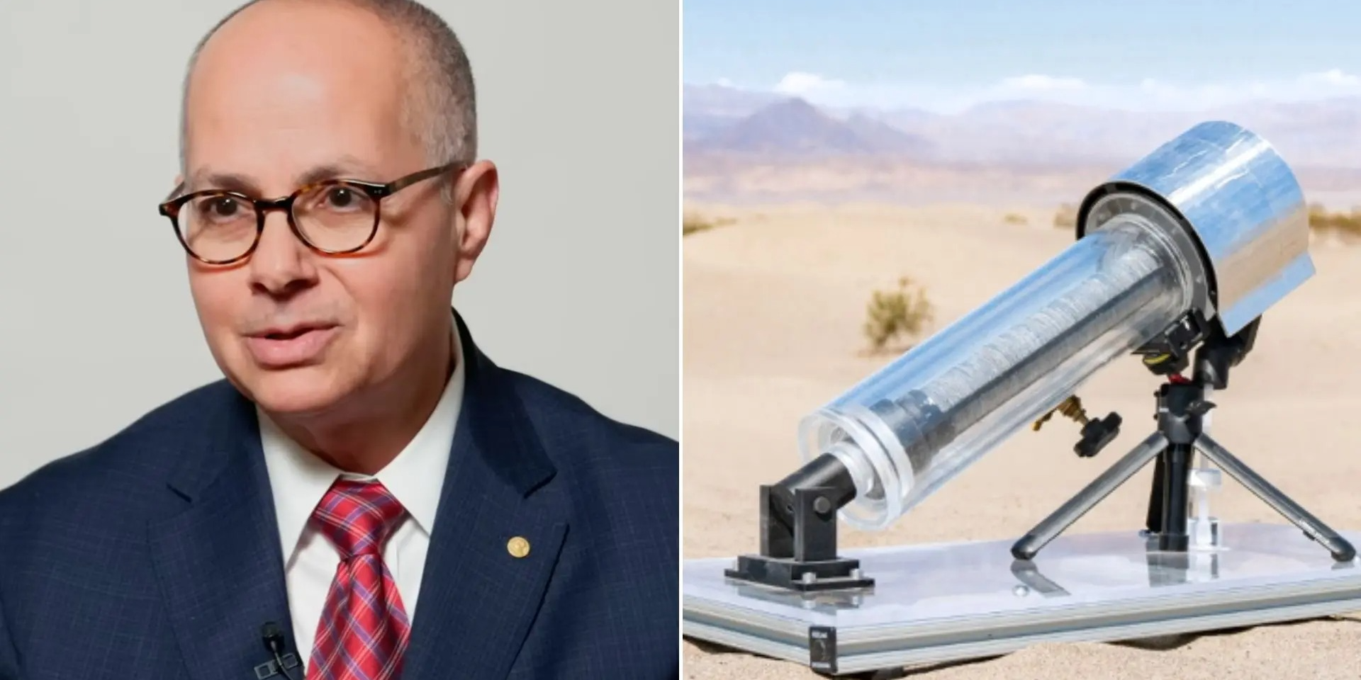Профессор Омар Яги, лауреат Нобелевской премии по химии в 2025 году, устройство, которое способно извлекать влагу из воздуха и превращать её в питьевую воду. Его эффективность недавно подтвердилась во время испытаний в условиях экстремальной жары Долины Смерти в Калифорнии.