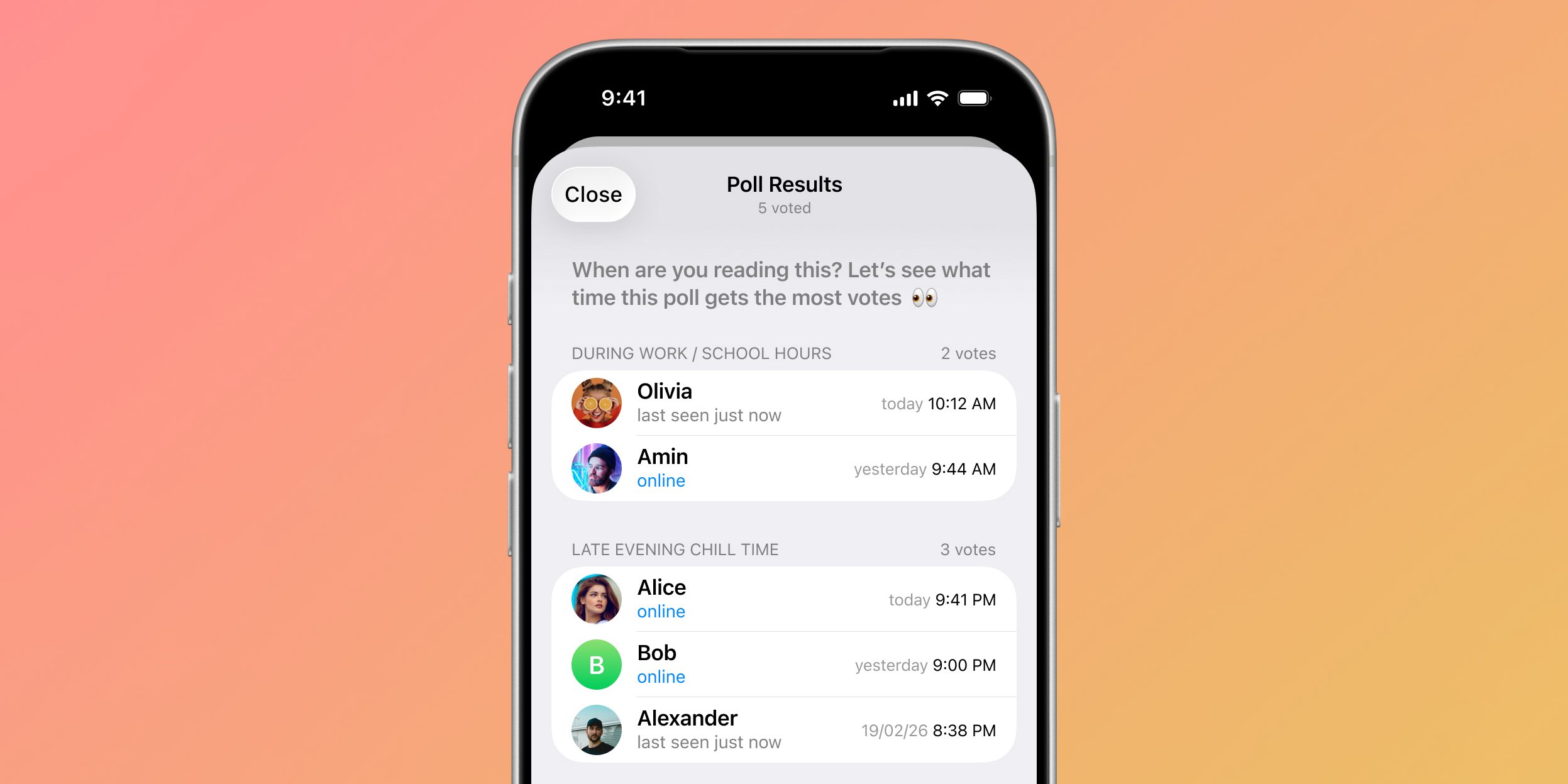 В публичных опросах теперь отображается время, когда проголосовал тот или иной пользователь. Также в обновлении расширили возможности ботов: для любого из них теперь можно включить функцию постепенного вывода текста, чтобы ответы отображались плавно по мере генерации.