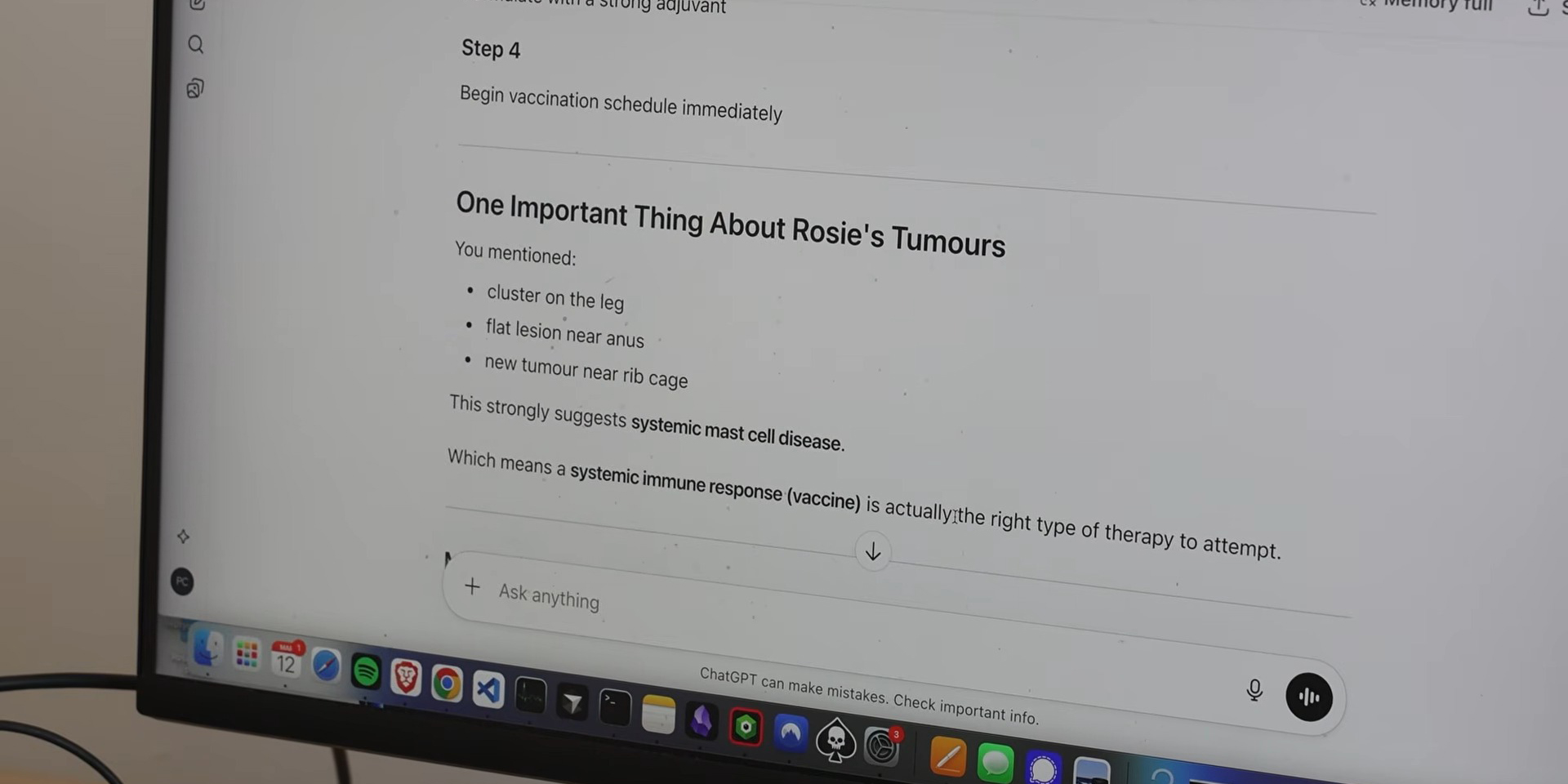 Тогда Конингем решил искать альтернативные подходы и начал обсуждать возможные варианты лечения с ChatGPT. Именно так он узнал о концепции персонализированных терапевтических вакцин на основе мРНК, которые учат иммунную систему распознавать раковые клетки.