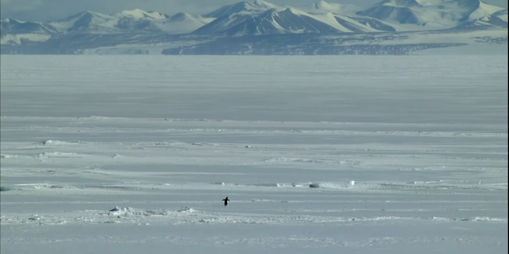 Кадры из документального фильма Вернера Херцога «Встречи на краю света», вышедшего в далёком 2007 году, неожиданно стали вирусными спустя почти 20 лет. Пользователи Сети делятся сценой с пингвином, который вместо того чтобы следовать за колонией к океану, идёт вглубь Антарктиды, где нет пищи.
