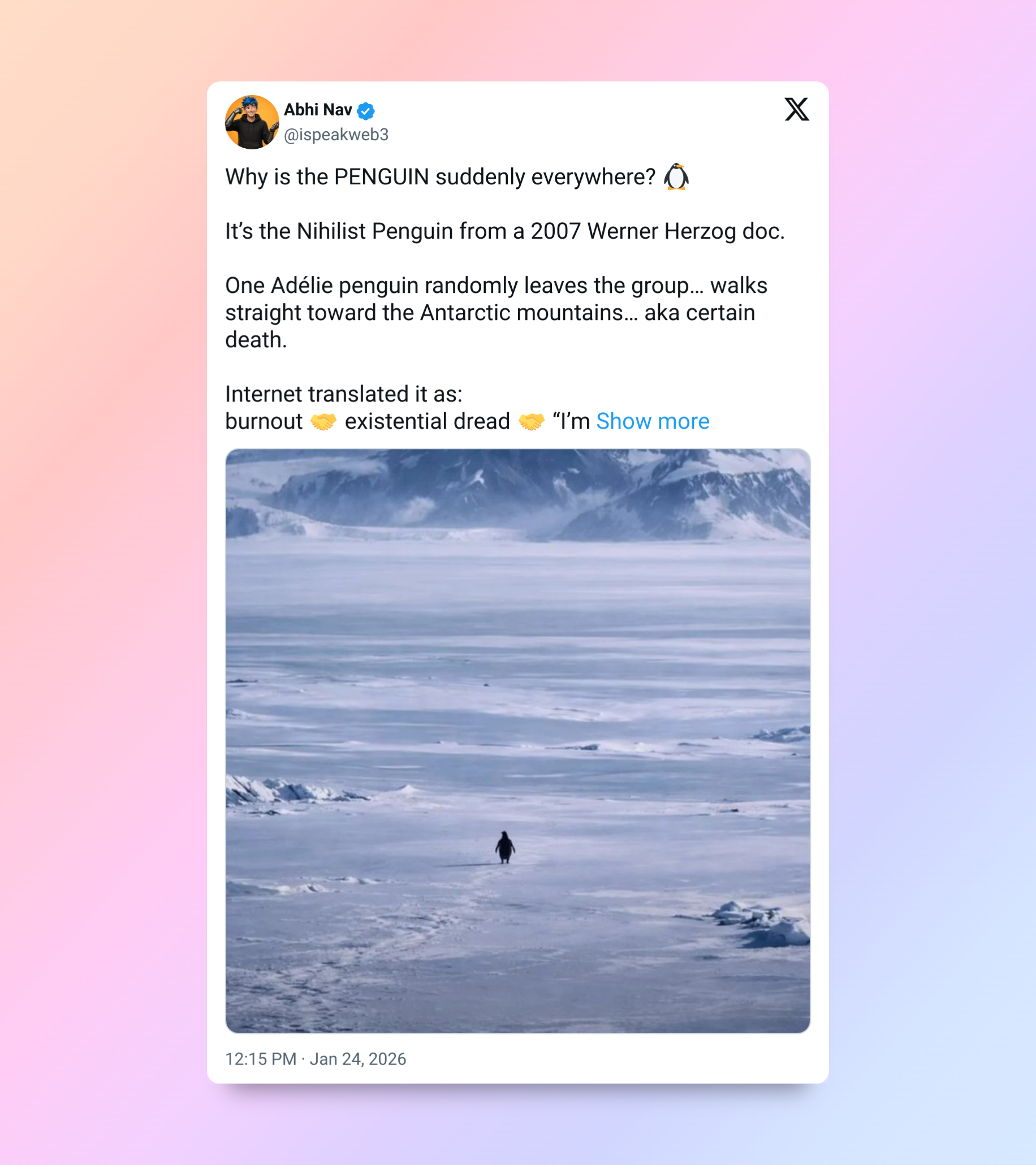 «Почему пингвины вдруг повсюду 🐧 ?».