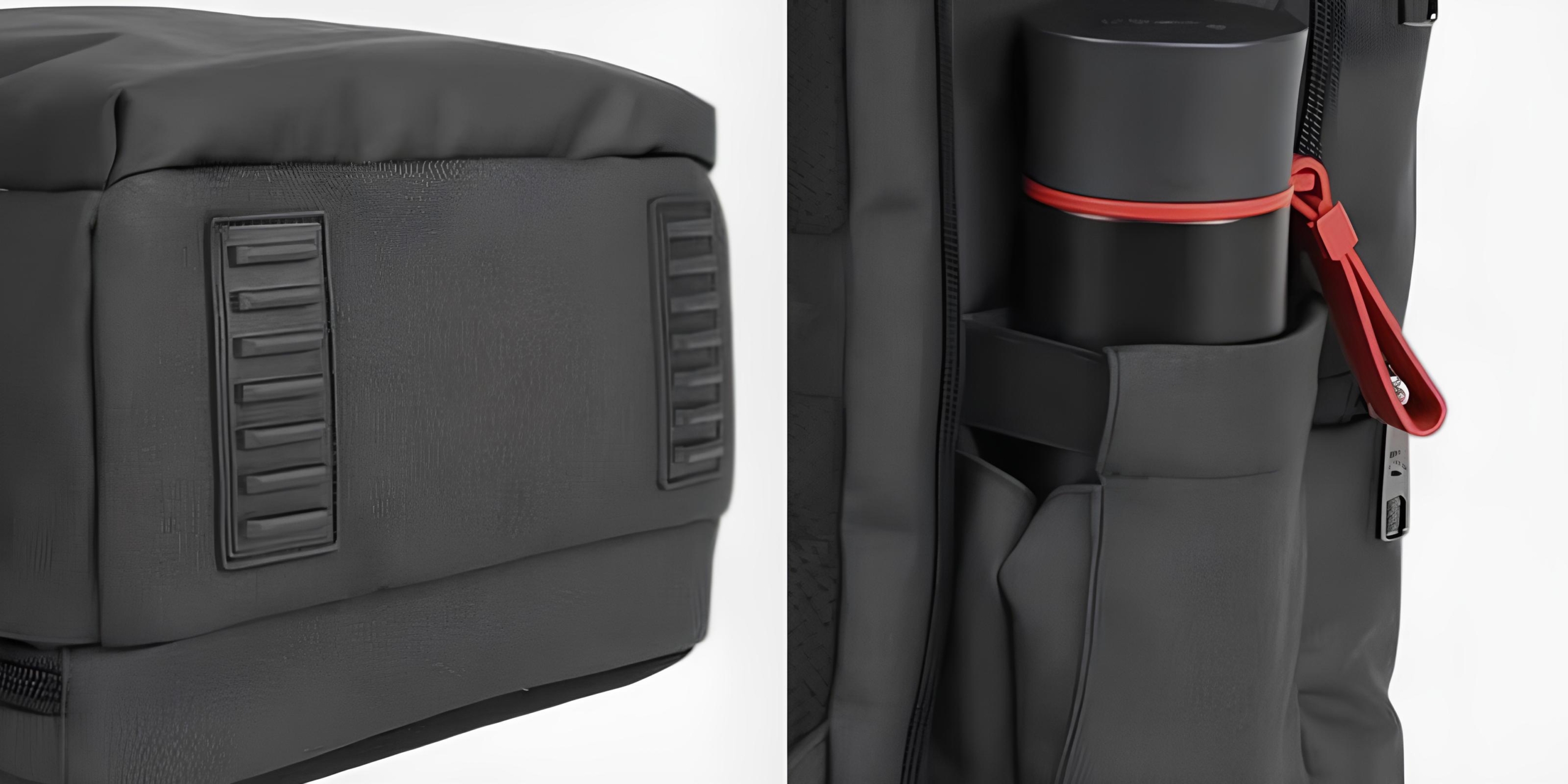 - Встроенный порт 3,5 мм и USB-разъём позволяют подключать наушники и пауэрбанк, чтобы удобно заряжать гаджеты на ходу, не открывая рюкзак.