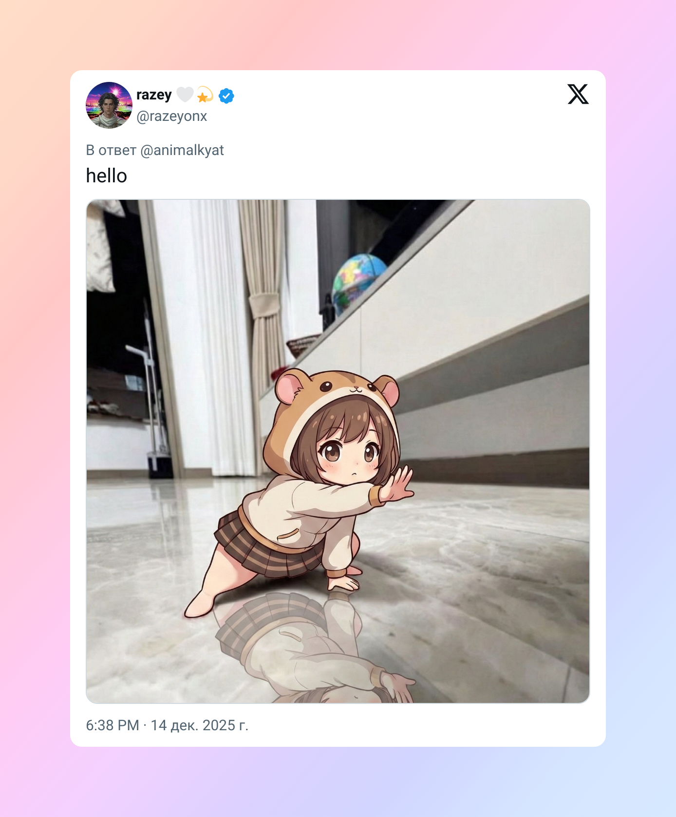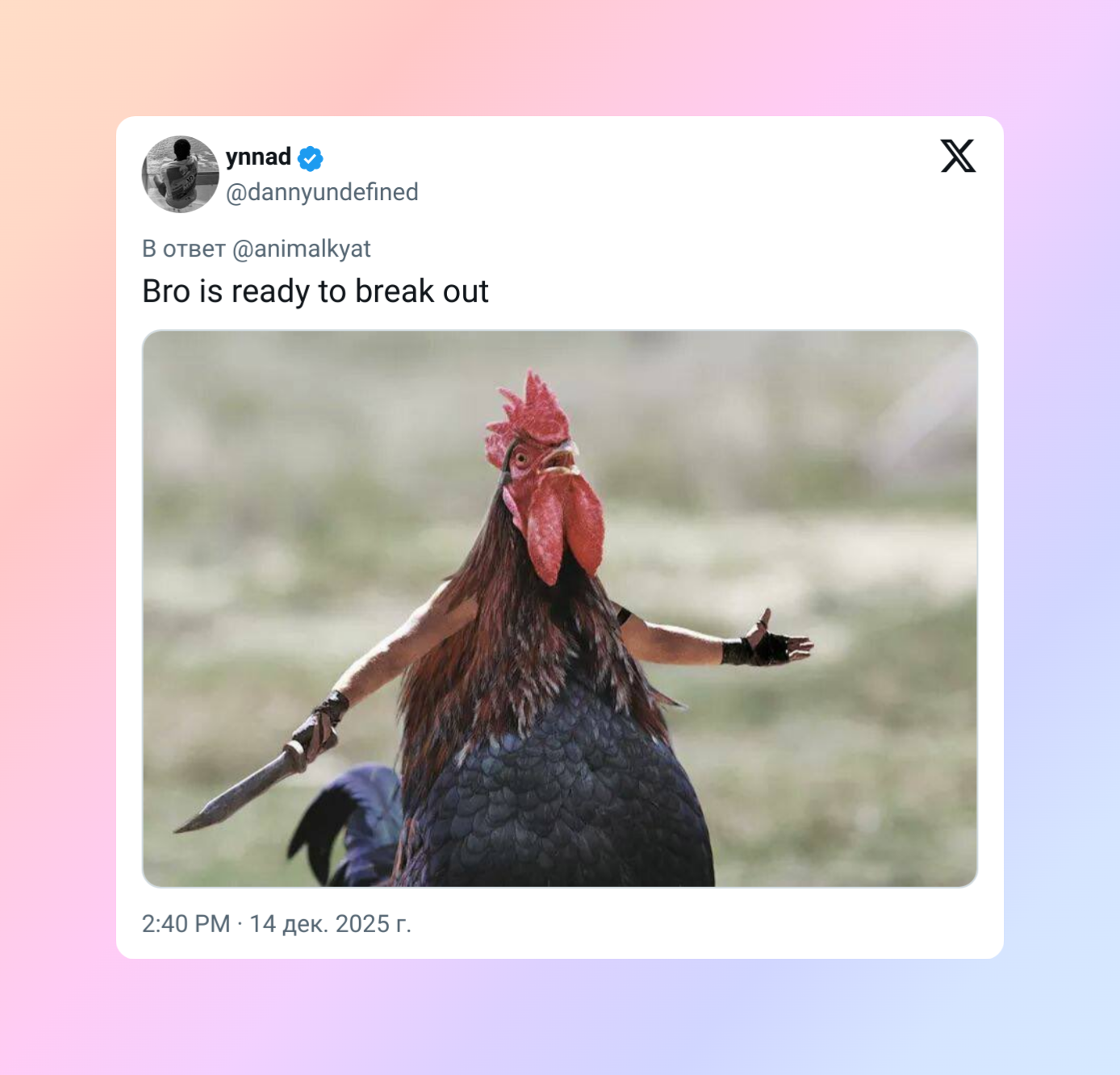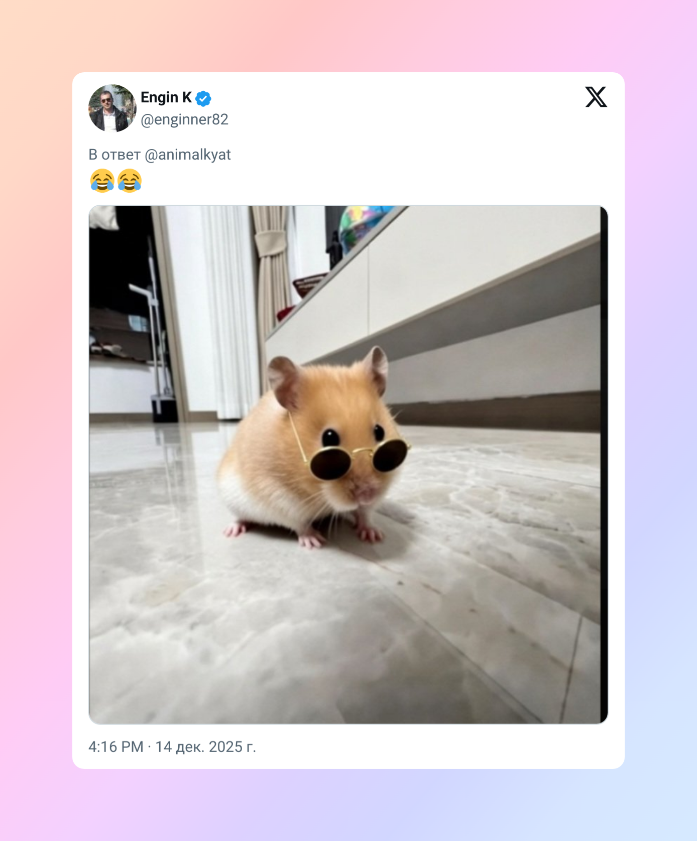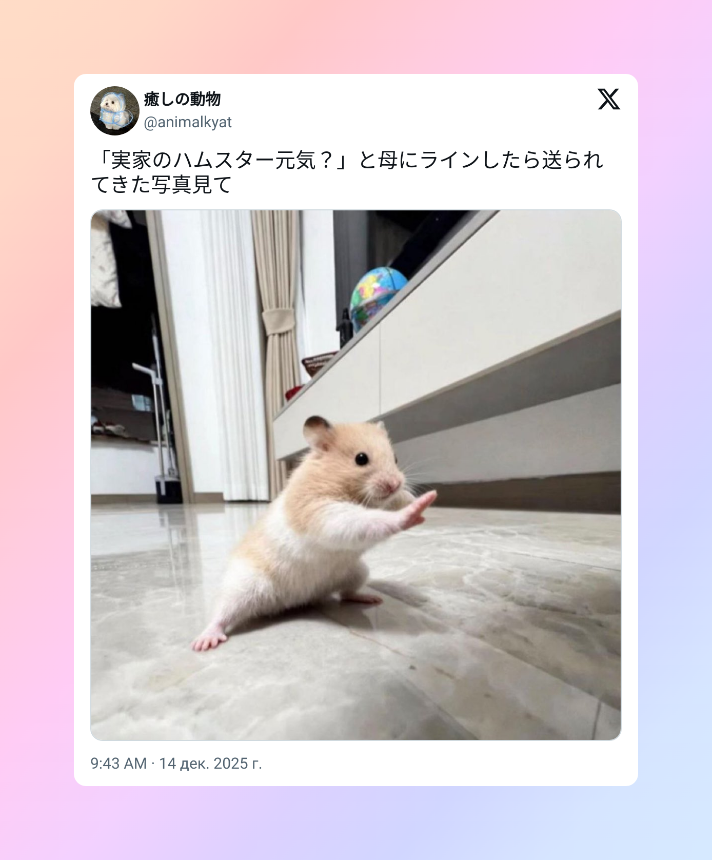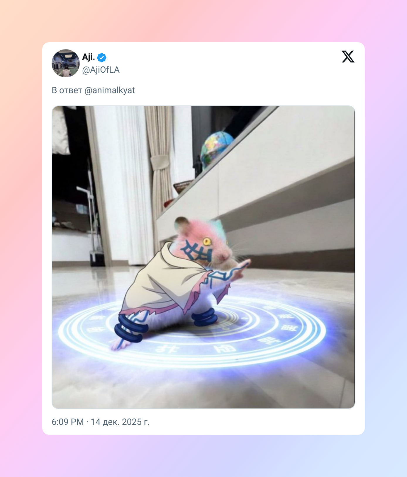 В соцсети X набирает популярность с фотографией хомяка в необычной позе — тот будто готовится к бою. Пользователи быстро превратили снимок в мем — кто-то с помощью нейросетей нацепил на зверька солнцезащитные очки, а кто-то наделил его волшебными силами и отправил сражаться с другими хомяками.
